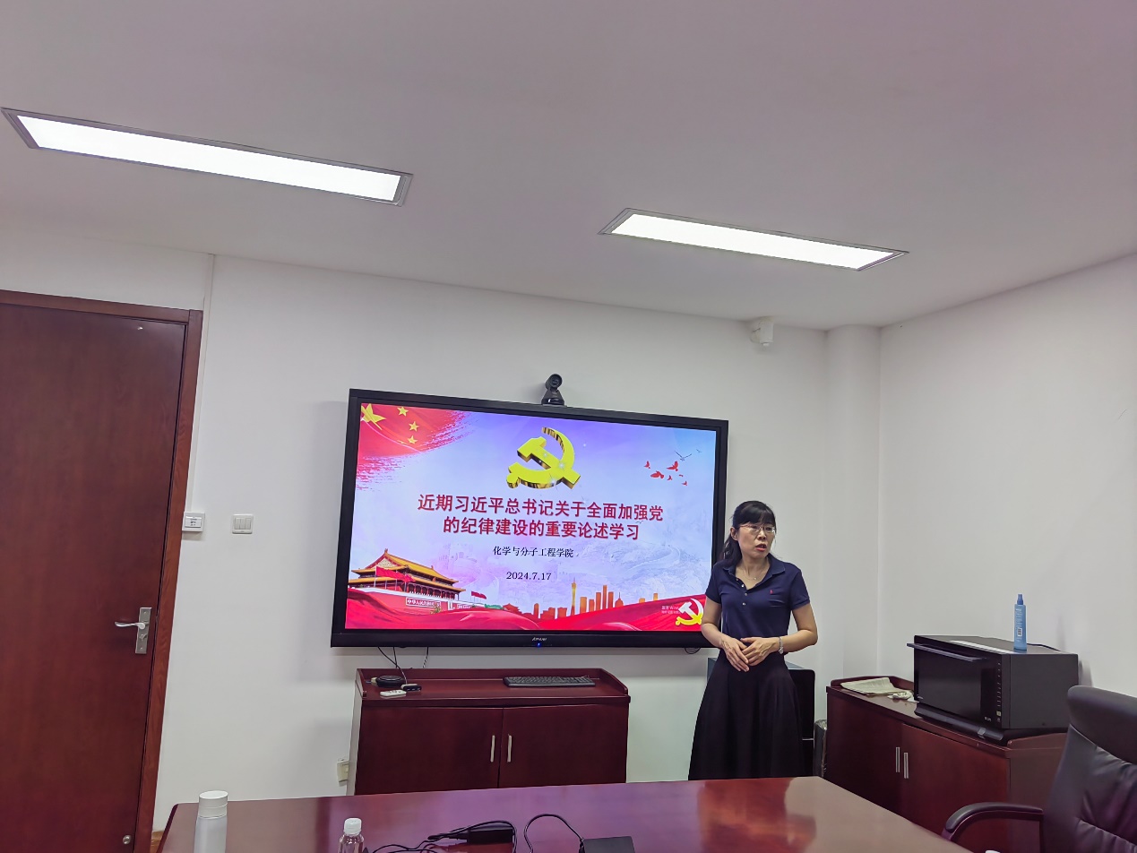 党委书记王媛媛谈到习近平总书记强调党性、党风、党纪是有机整体,党性是根本,党风是表现,党纪是保障。坚持党性党风党纪一起抓,是管党治党系统思维的体现,是对正风肃纪规律性认识的进一步深化,强调党委委员和教工党支部书记需有良好的政治意识和政治规矩,引领学院党性、党风、党纪建设。大家一致认为,习近平总书记关于全面加强党的纪律建设的重要论述,是习近平新时代中国特色社会主义思想的重要内容。要把学习习近平总书记的重要论述和学习纪律处分条例贯通起来,从基础制度严起、从日常规范抓起,真正把学纪知纪明纪守纪内化于心、外化于行。