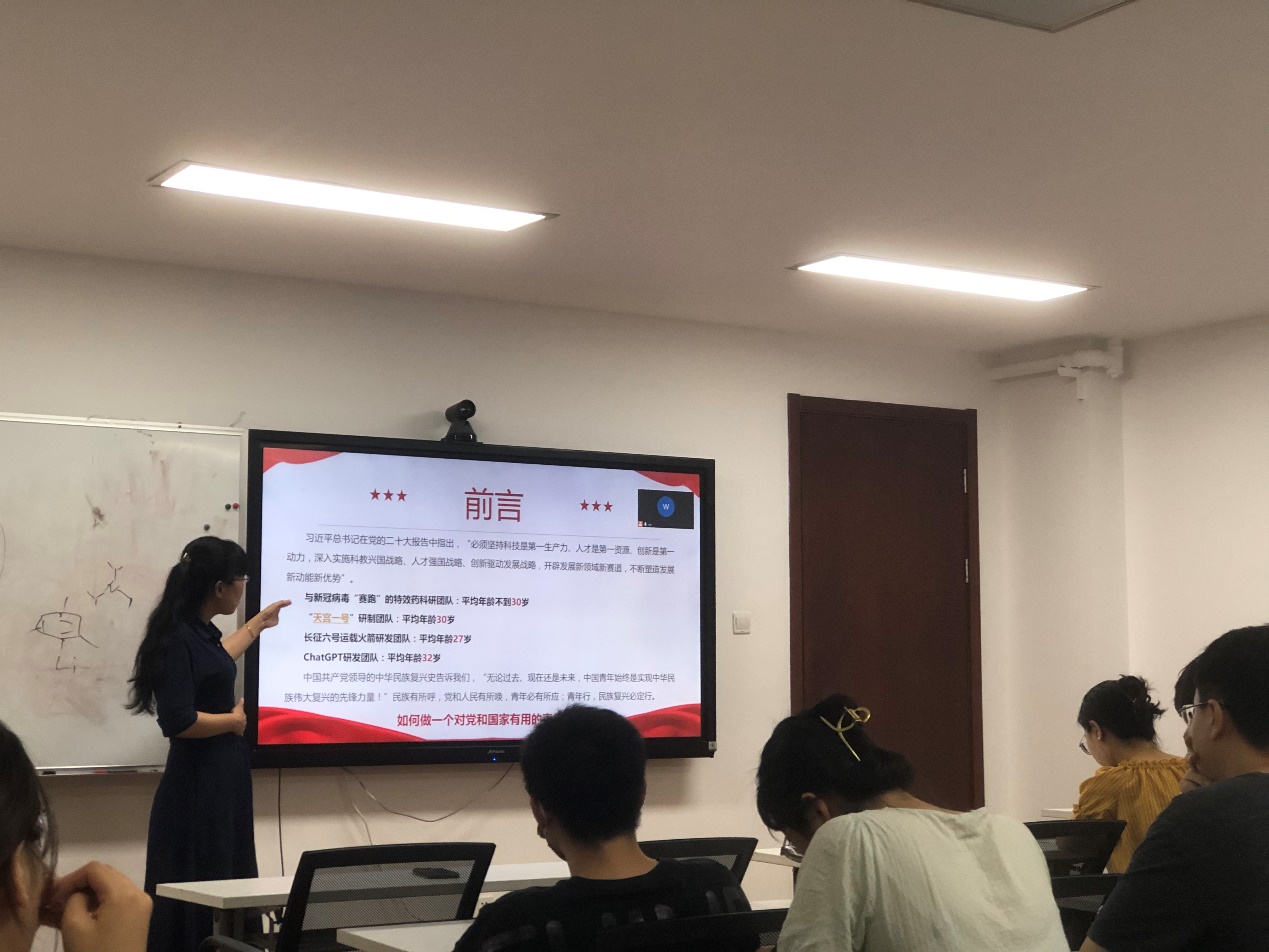 2023年6月5日晚,学院副院长、党委委员王媛媛以“以德为先,做有理想、有担当、能吃苦、肯奋斗的新时代好青年”为主题,为结对党支部2021级闵行校区博士研究生党支部及学院本学期新发展的党员上了一堂生动的党课。