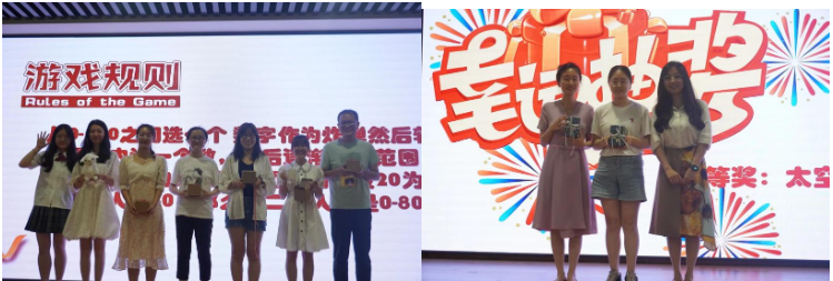 晚会节目结束后,现场开展了最后一轮游戏——“倒着说”。参赛者们需要将主持人的话反着说,“嘴瓢”的时候让现场观众笑声不断。随着抽奖环节一等奖的揭晓和毕业感言的抒发,本次晚会也画上了圆满的句号。