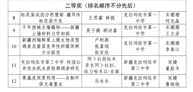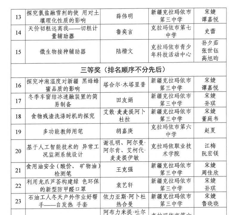 第38届克拉玛依市青少年科技创新大赛获奖名单