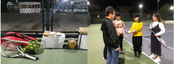 夜幕初降,来自学院网球联盟和研会的志愿者同学已经将本次比赛的物资运送到场,他们细心地检查球拍、记分牌,清点礼物和到场同学。当场地渐渐热闹,他们耐心地为参赛选手讲解比赛规则,祝福他们以球会友,通过运动愉悦身心。