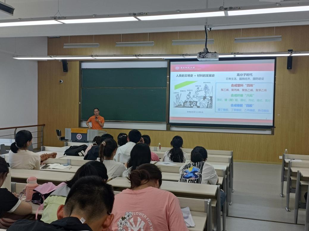最后,是由高分子化学学科组的张敏教授来向同学们介绍高分子化学。张老师首先向大家介绍了高分子的发展历程,虽然高分子化学的发展自施陶丁格起仅有百年左右的时间,但如今我们的生活早已离不开各种各样的高分子。高分子化学不仅存在于日常生活中,在国fang建设、工农业生产上也有着不可或缺的作用。随后,张老师向同学们介绍了学院高分子化学的课题组及其研究方向,指出高分子化学的研究在未来有着巨大的发展空间,希望同学们能够进入到高分子化学的课题组,一起学习研究。