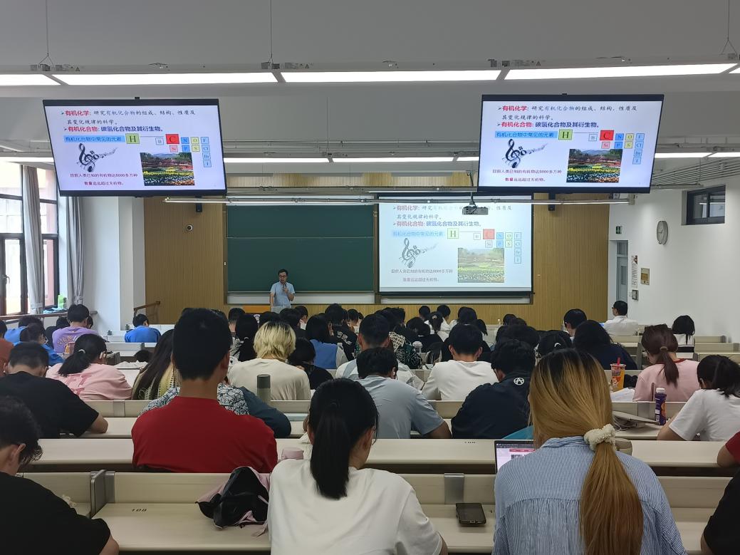 2024年5月29日下午,av大平台 为大一的同学们举办了一场特别的活动——“走进学科组”系列讲座。这次的讲座是继上学期无机化学、分析化学讲座后,对另外的物理化学、高分子化学和有机化学的介绍。本次讲座,由张中海副院长主持,并有幸邀请到了物理化学学科组组长王欢教授,有机化学学科组组长刘路教授和高分子化学学科组张敏教授为同学们分别介绍这三大化学学科。同学们也都热情满满,讲台之下座无虚席。