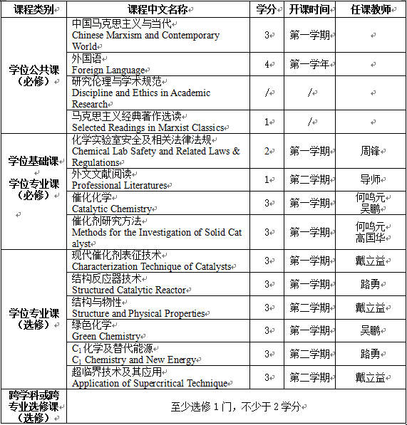 博士研究生课程包括学位公共课、学位基础课、学位专业课、跨学科或跨专业选修课。学位公共课包括政治理论、外国语等公共必修课程,至少修读6学分;学位基础课为学位必修课程;学位专业课包括以学科群为单位开设的专业必修课程和指向研究方向的专业选修课程,学位基础课与学位专业课(必修)课程的学分之和不少于5学分,学位专业课(选修)课程至少选修1门,不少于2学分。博士研究生课程学习至少应取得15学分。