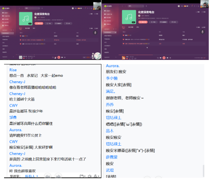 在歌声中,许多同学也分享自己所爱的歌曲,仿佛聊天才刚开始。大家意犹未尽,互道晚安。让我们一起期待下期节目。