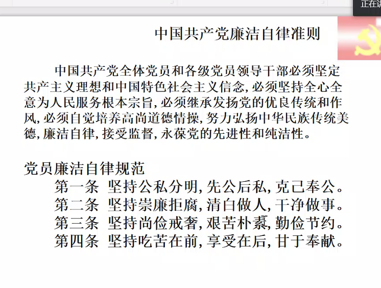 讲座的最后,赵正桥老师还特别强调了中国共产党廉洁自律准则,告诫全体党员要坚持“两学一做”,不忘初心,牢记使命。