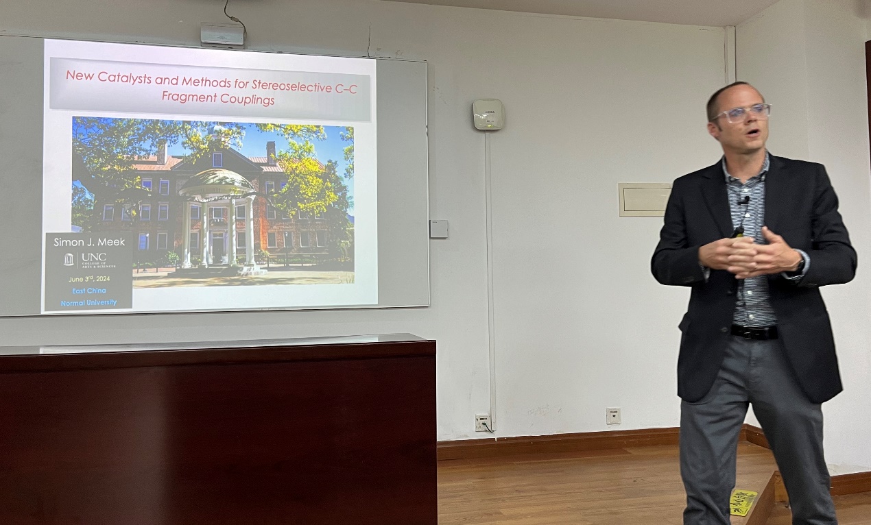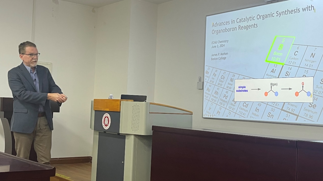 2024年6月3日,受洪恺研究员邀请,av大平台 迎来了两位国际知名学者——James P. Morken教授和Simon J. Meek教授,他们分别带来了题为“Advances in Catalytic Organic Synthesis with Organoboron Reagents”和“New Catalysts and Methods for Stereoselective C-C Fragment Couplings”的精彩学术报告。报告在闵行校区化学馆135教室如期举行。