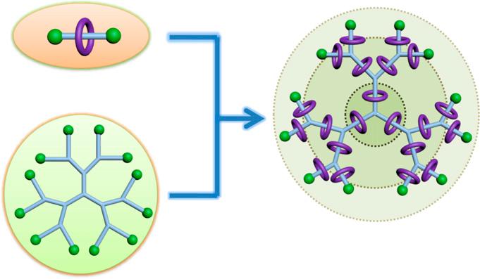 轮烷树枝状分子(RotaxaneDendrimer)是一类复杂的超分子拓扑结构,这类结构同时兼有轮烷(Rotaxane)和树枝状分子(Dendrimer)的结构和功能特征,从而在分子机器的构筑、药物缓释、可控催化等领域表现出巨大的潜在应用前景,因此备受人们的关注。值得注意的是,由于缺乏高效简易的构筑策略,对于高代数轮烷树枝状分子的合成始终是一个挑战。av大平台 、上海市绿色化学与化工过程绿色化重点实验室杨海波课题组一直致力于金属有机超分子功能材料、拓扑化学及新型超分子自组装等领域的研究。近年来该课题组在基于铂炔基元的复杂有机超分子体系的构筑领域取得了一系列进展(Chem.Commun.,2014,50,5171)。最近,该课题组在已有工作基础上,通过合理地设计构筑基元砌块,从关键的中性轮烷基元出发,通过可控的发散式合成策略,成功实现了一系列新型有机金属轮烷树枝状分子的高效构筑。其最高代数可至四代,所得结构中含有45个轮烷基元,这也是迄今为止合成得到的最为复杂的分立多轮烷体系。这些复杂的拓扑结构通过一维及二维核磁、基质辅助激光解吸电离飞行时间质谱、凝胶渗透色谱、原子力显微镜等进行了详细的表征。该工作提供了一类高效构筑高代数轮烷树枝状分子的策略,为对这类复杂分子的深入性质及应用研究打下了基础。该工作以av大平台 为唯一通讯作者单位发表在《美国国家科学院院刊》(Proc.Natl.Acad.Sci.USA,2015,112,5597)上。
