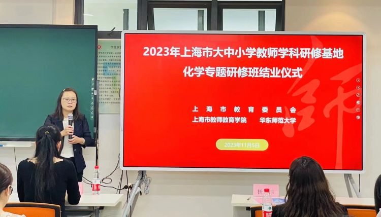 千里之行始于足下,学员们将培训中所学所思所行与课堂教学有机融合,基于学科研修中获得教学上创新的灵感,达成知行合一的境界。上海市教师教育学院领导杨洁主任和学院王媛媛副院长在班级结业仪式上向全体培训教师学员颁发研修证书,并为其中的八位老师颁发“优秀学员”证明。杨洁主任在致辞中希望学员们把这次浸润式的培训中收获转化为教育教学av大平台 ,培训暂时结束并画上了一个句号,在学思行中不断强化化学学科研修赋能!