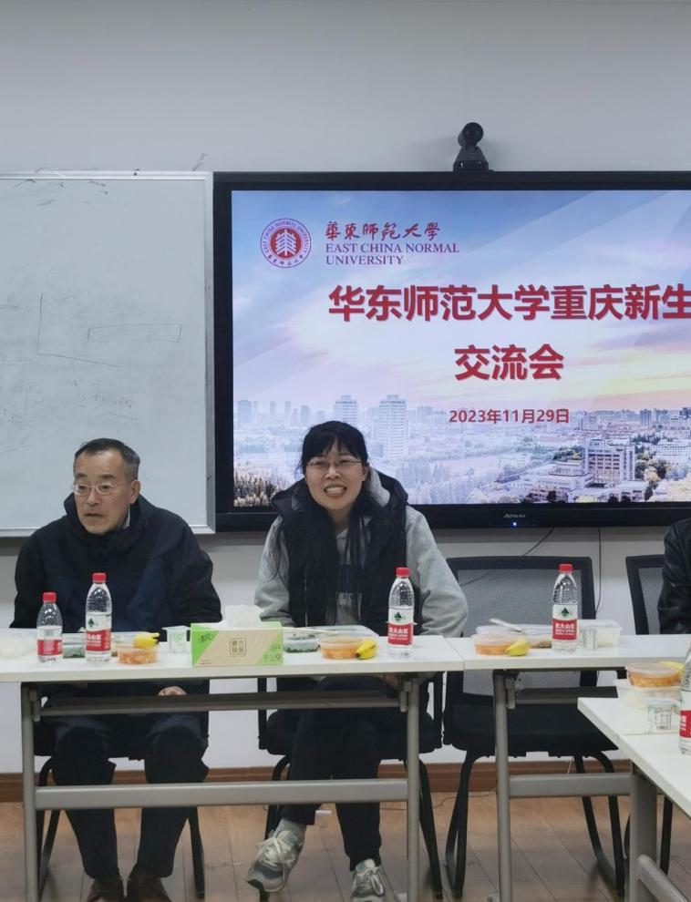 王媛媛老师对重庆籍新生们的到来表示热烈的欢迎和亲切的问候,线下见面是招生组老师和新生的感情的升华,希望同学们继续和招生组老师保持联系。她表示同学们可以在座谈会上畅所欲言,表达自己来校学习与生活的真实感受。鼓励同学们尽快完成从高中到大学的角色转变,积极主动、奋发图强,充分利用华师大的优质资源和平台,合理的探索自己的多样可能性。化学院重庆招生组每位老师,会全流程助力同学们追求卓越,同时也将积极与学校企业合作,开展实习实践,竭力推动就业。
