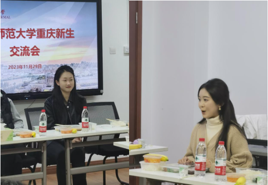 重庆籍老生代表、来自英语专业的魏骏彦同学结合个人发展经历向在座的新生们分享了在华师大日常学习、学生工作与社会实践等方面的成长经验;她告诉新同学,华师大是一个会有很多收获和温暖的地方,有杰出的专业课老师,有开放自由的学术氛围,更有融洽和谐的人际环境。并以“过来人”的身份强调了自律学习的重要性,告诫大家在大学也不要放松。来自新闻传播专业的新生代表赵珈艺回忆分享了疫情防控下的特殊高考,在条件艰苦的情况下如何备战高考,三年的苦读换来了今天成为师大人的喜悦。成为师大人是幸运的,但大学不是奋斗的终点,而是一个新的起点,希望自己能够尽快适应新的环境,融入新的集体,大学四年里能够全方面发展,不断提升与充实自己。