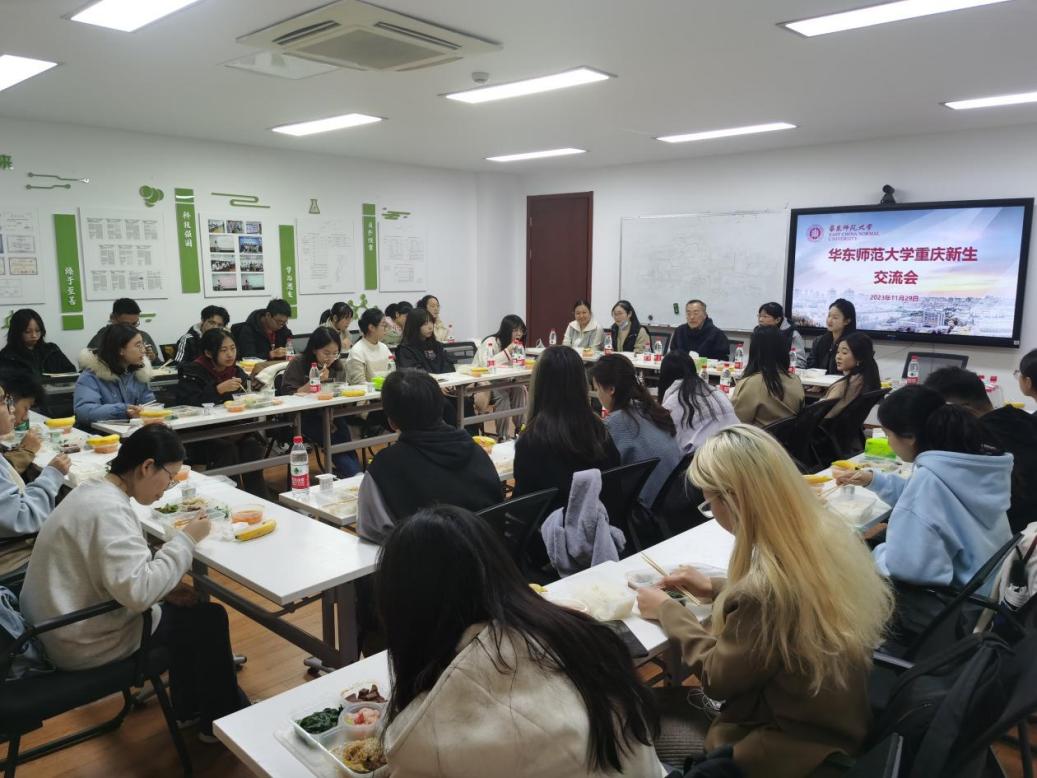 交流互动环节,王媛媛老师就同学们提出的转专业情况、双学位学业压力、实习安排等问题给予了贴心专业的解答。在轻松愉快的氛围中,新生们畅所欲言,分享自己进入华师后的学习生活以及遇到过的困难,来自物理学院的刘同学表达了对大学课程学习的不适应,他说:“高等数学课程难度较大,老师进度太快,部分内容课堂上听不懂。王老师指出,大学的学习方式相比高中发生了很大变化,需要同学们提高自学能力、发挥主观能动性,建议同学们要经常与任课教师交流沟通,有困难要第一时间寻求帮助。还有同学提出目前英语基础与其他省市同学特别是上海同学相比基础较薄弱,担心英语吃力﹑跟不上的问题,王媛媛老师肯定了同学们能进入华师大这样一个985院校所付出的努力,虽然目前可能存在起点不一样的情况,但相信大家的学习能力是一样的,只要明确学习目标和计划,经过一年或者两年的学习,英语水平会有很大的提升。勉励新同学们在进入大学以后要更加自律,更加合理地安排自己的时间,根据自身学业情况及时调整业余时间,尽快找到大学生活的重心。座谈会召开正值期中考试结束,王老师很关心大家期中考试情况,强调成绩上产生差异很正常,只要能查漏补缺,积极弥补自身短板,每位同学们的未来都充满无限可能。同学们都深受鼓舞,纷纷表示受益匪浅。