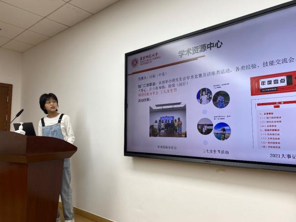 在讲解中,研会文体部历次的趣味活动、学术部干货满满的知识讲座、组织部严谨的工作作风、就业部丰富多彩的生涯活动、融媒体部的运营魅力让研一新生们报以热烈掌声。