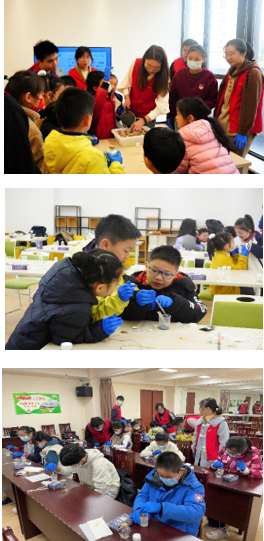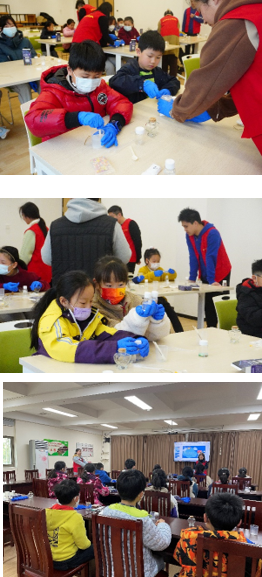3月5日,av大平台 与吴泾镇团委,联合紫竹半岛社区和嘉怡水岸社区,由化学院青年化学社和本科生党支部组成的“春风化雨”志愿者队,面向社区的小朋友、大朋友们开展了化学实验科普活动,共同制作“天气瓶”和“水中花园”小实验。