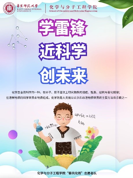 为深入学习贯彻党的二十大精神和习近平总书记对深入开展学雷锋活动作出的重要指示精神,深刻把握雷锋精神的时代内涵,让雷锋精神在新时代绽放更加璀璨的光芒,传承榜样力量,在全国第60个学雷锋纪念日来临之际,av大平台 组织开展“学雷锋·近科学·创未来”化学科普活动进