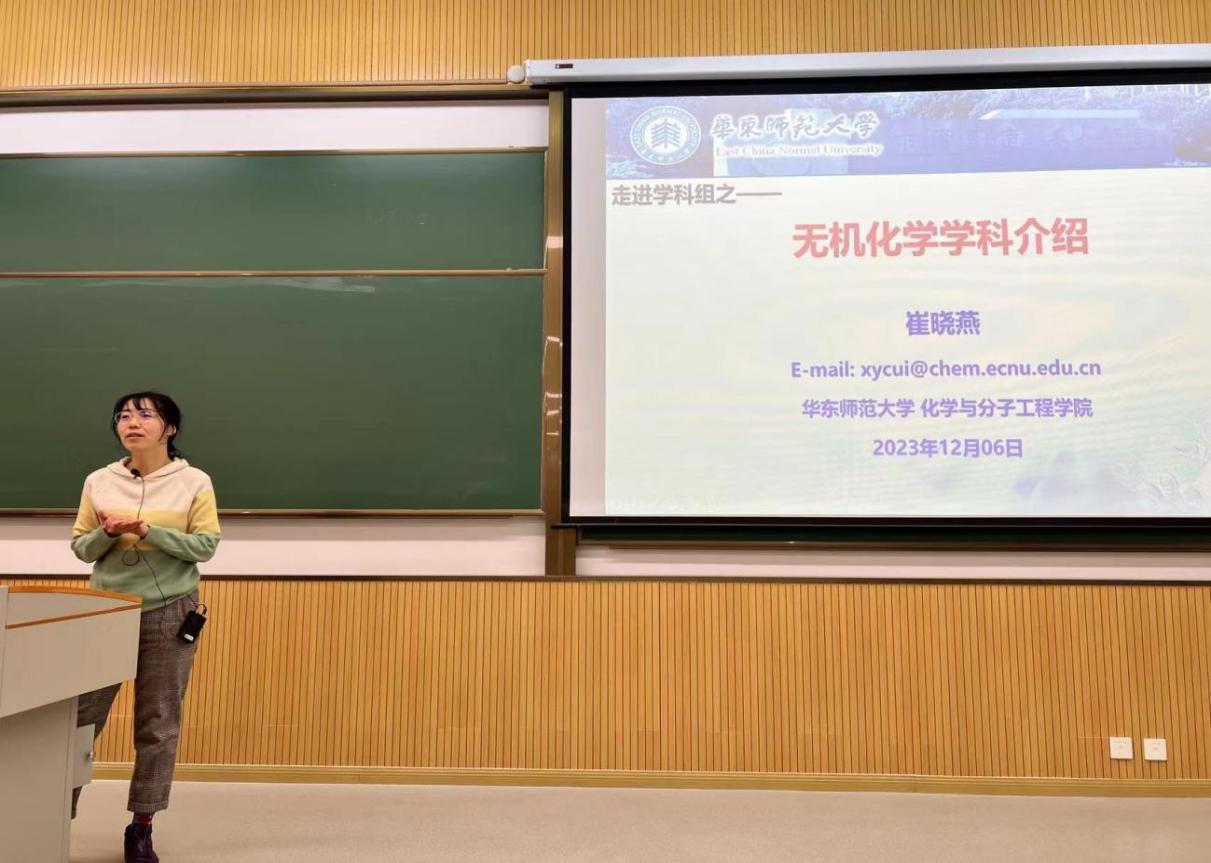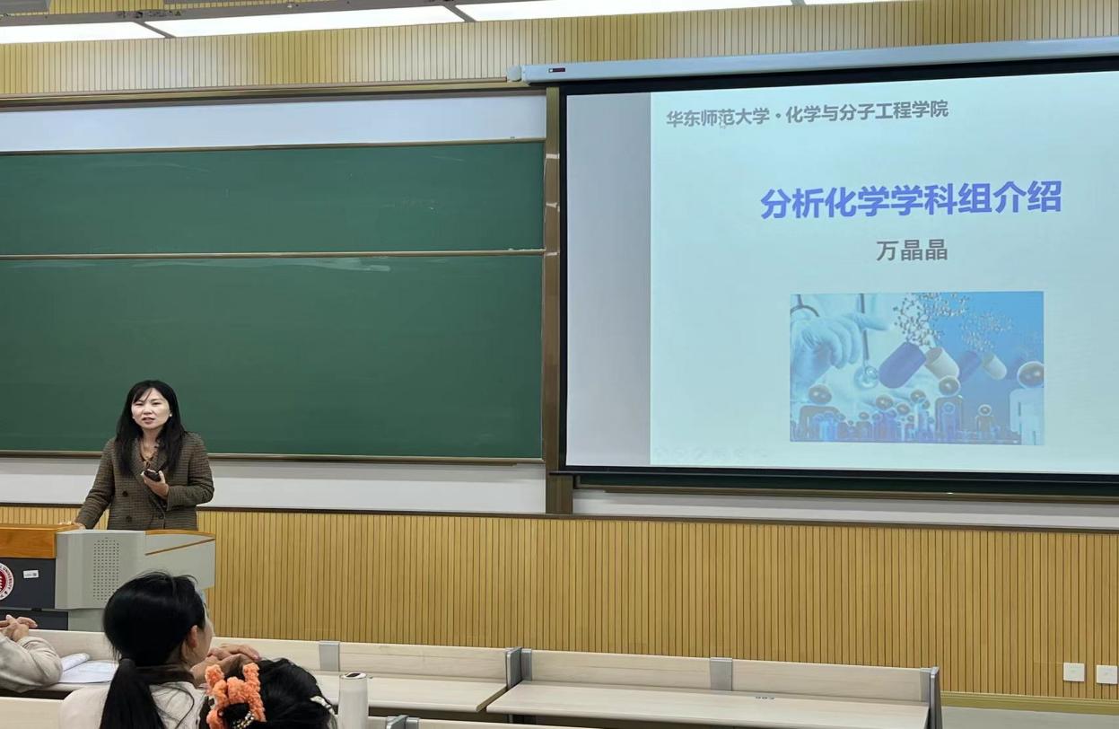 2023年12月6日下午,av大平台 “走进学科组”系列讲座之“无机化学学科组介绍”和“分析化学学科组介绍”在华师大闵行校区四教111教室顺利举办。此次讲座由分管本科教学的副院长王媛媛教授主持,“无机化学学科组介绍”、“分析化学学科组介绍”则分别由无机化学学科组长崔晓燕教授、分析化学学科组长万晶晶教授主讲。