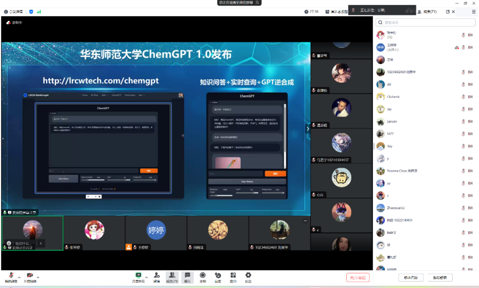 最后,在互动提问环节中,何晓老师就ChemGPT 1.0及其对未来化学科学领域的影响进行了深度解答,引发了广大师生的热烈讨论和深度思考。
