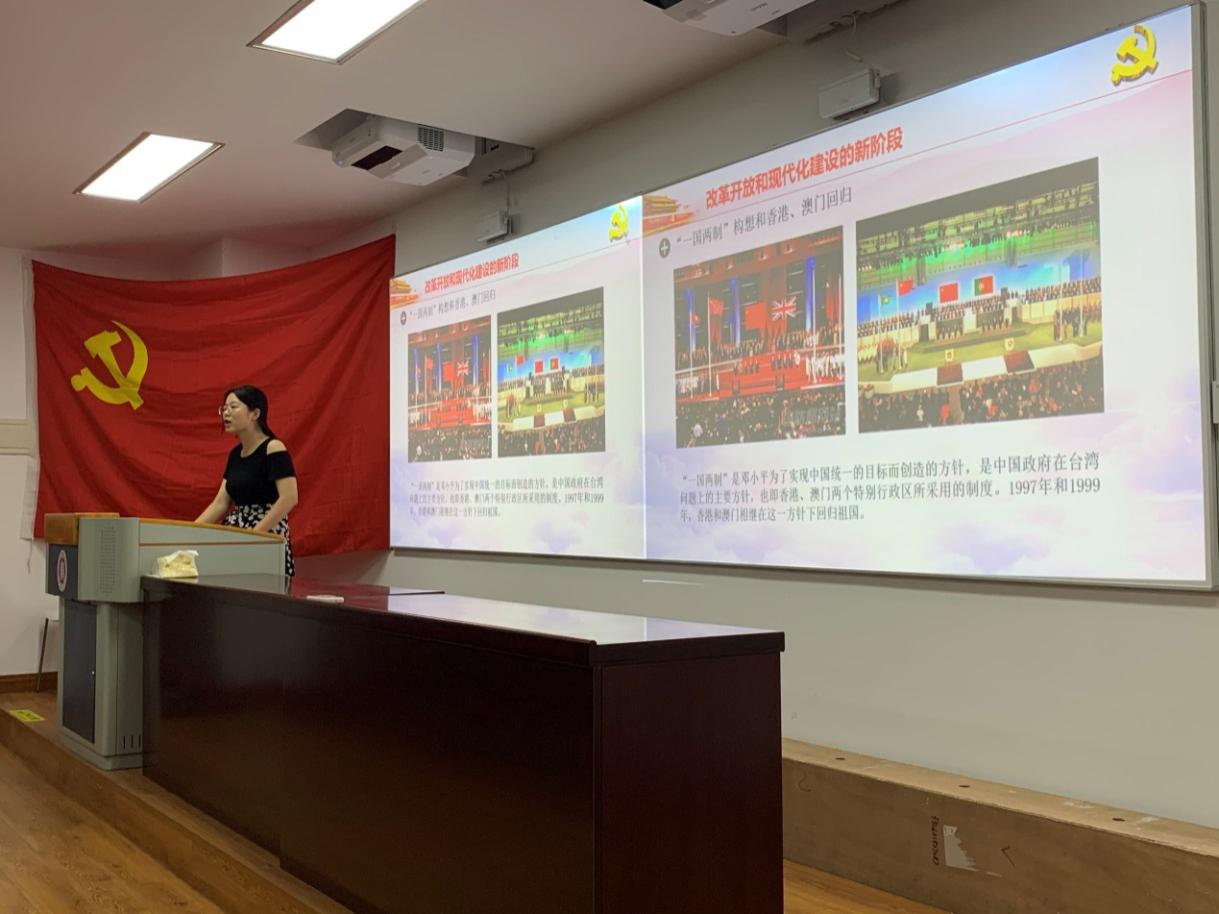 会上,孙双莉同志以生动的事例、丰富的形式以及深入浅出的讲解,带领与会党员从中国共产党的诞生,建党九十九年的光辉历程和伟大功绩,以及建党执政经验和历史启示中汲取奋进的力量,再次加强了对党的感情认同、理论认同、政治认同。党课紧紧围绕中国共产党建立的初心和使命,以“马克思主义在中国的传播”为主线,重温了中国共产党在新民主主义革命时期、社会主义革命和社会主义建设时期、改革开放和社会主义现代化建设时期的重大事件和奋斗历程。