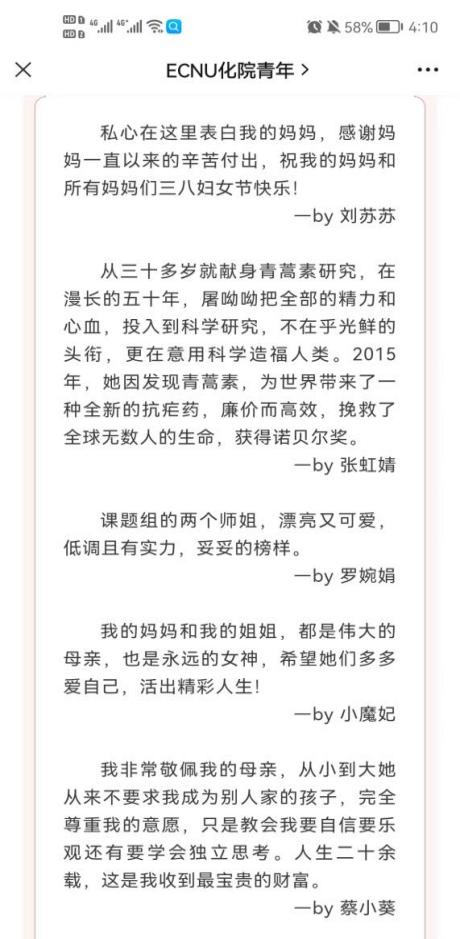 3月7日,av大平台 两校区研会筹备开展了“你和三月,都是春天”的女生节征集活动,其内容分为:1、女同学们的今昔对比照以及祝福;2、讲述自己的女性偶像,以记录女同学们成长过程中那碰触内心的感动、那潜移默化的蜕变和意想不到的惊喜,活动参与对象为我院的全体学生。我们带着深切的祝福将每一个美好的祝愿与期盼送到女孩子们的手中。
