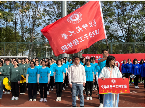 2022年10月25日,av大平台 运动会在两校区进行。运动会开幕式上,av大平台 的同学在院党委书记鲜跃仲老师的带领下走向主席台。随后,参与入场式的化院同学排成一列,表演第九套广播操。在本次运动会中,化学院的健儿们踊跃参加各项赛事,运动员们在赛前做足了充分准备,在比赛中他们敢为人先、一往无前,取得了优异成绩。