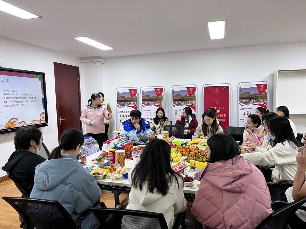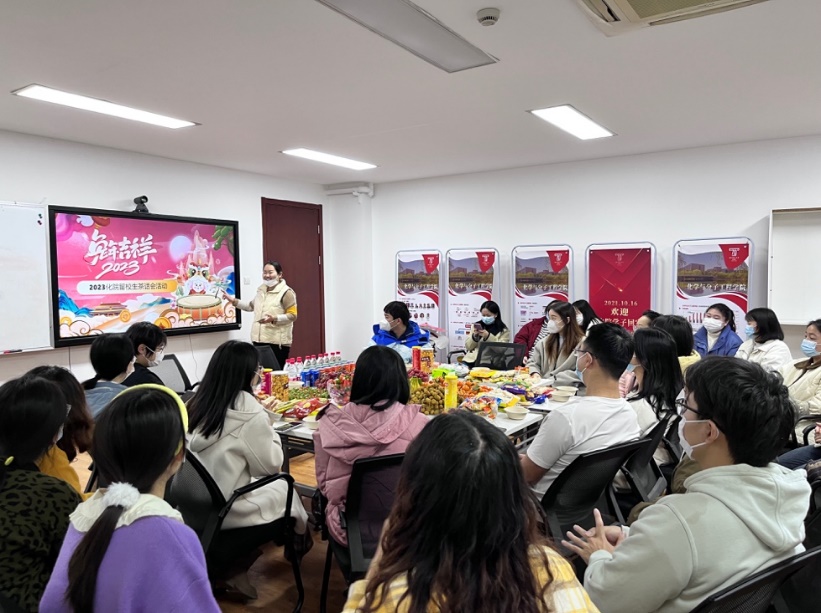 待同学们落座后,闵行校区研会主席陈文艺同学首先致开场白,她热情欢迎了大家的到来,并宣布活动正式开始。在温馨的氛围中,同学们吃着水果零食,聊着这一年里的点点滴滴。期间,鲜跃仲老师和王婷婷老师也加入了聊天话题,和同学们一起共度欢乐时光。