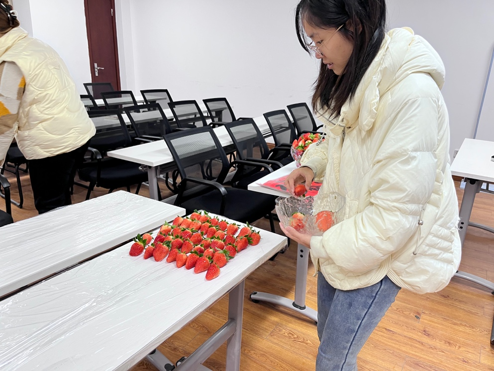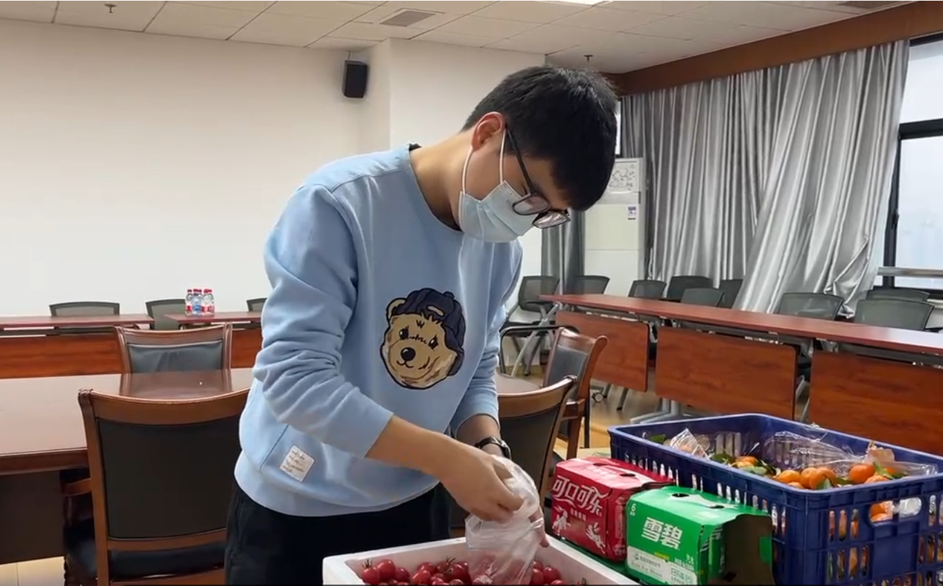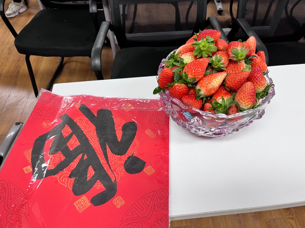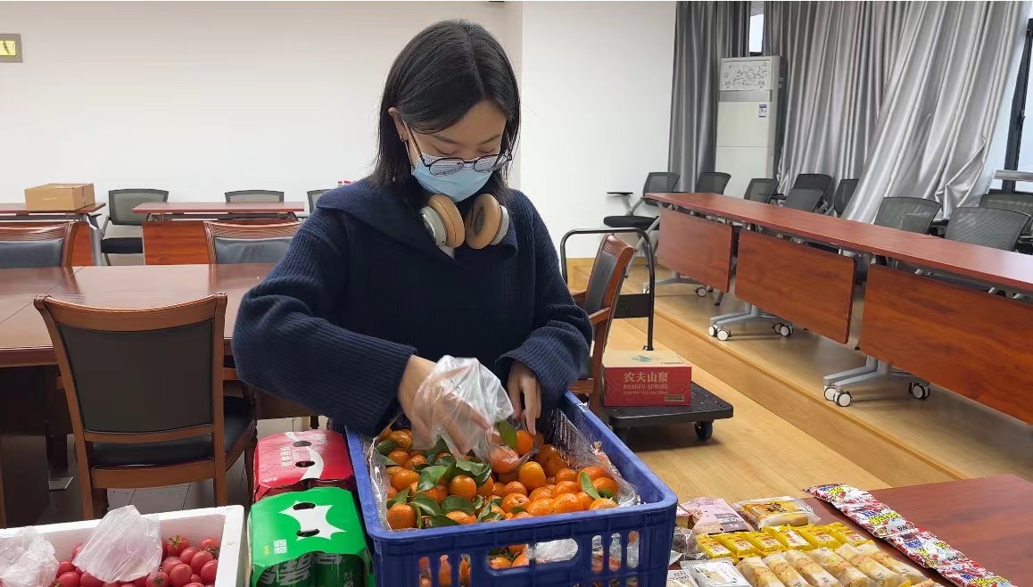 在活动正式开始前,两校区研会工作人员早早来到现场,用福字、水果和点心布置一个温馨的会场,桌面上摆满了各种零食瓜果,搭配上红红的福字,一下子就有了过年的味道
