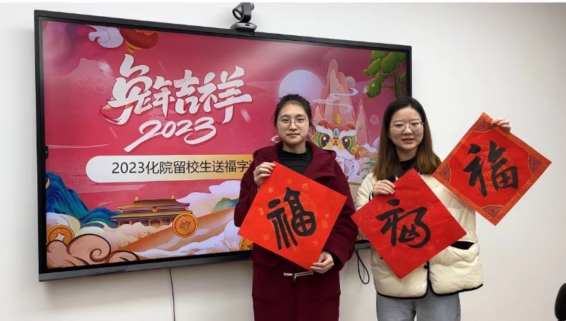 活动最后,现场的同学和老师们拿起了手中的福字,合影记录了这美好的时刻。
