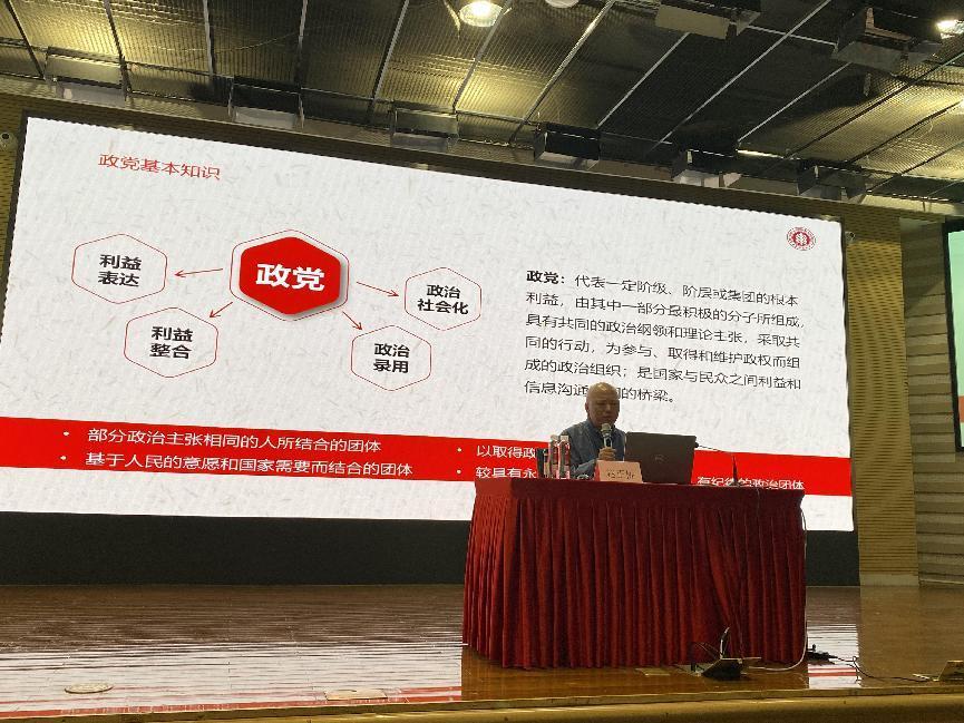 马克思主义学院党委书记赵正桥教授以“党的理想、性质和宗旨”为主题为学员们进行第二场讲座。他从政党的基本理论出发,以中国共产党的发展史为脉络,结合生动详实的事例全方面呈现了中国共产党的理想、性质和宗旨。他从历史和现实的角度阐释了为什么马克思主义能够在中国扎根并不断发展,让学员更加正确并充分认识中国共产党,激发学员认真学习党的理论知识,并在思想上行动上积极向党组织靠拢。