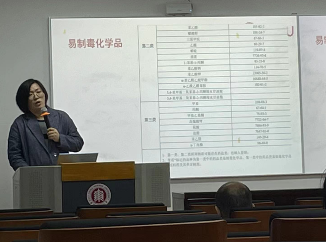 首先,王晶老师以《管制化学品的科学管控》为题,从何为管制化学品、科学管控要求入手详细介绍了管制化学品的分类、管理方法和建议。并结合教育部、公安局、派出所、刑侦支队的不同行业监管部门检查特点,以大量例证详细讲解了化学品安全管理的细节、注意点。最后对教育部20244月最新颁布的《高等学校实验室安全分级分类管理办法(试行)》进行解读,对标学院实验室内化学品现状进行精准分析。王晶老师丰富的化学品知识储备,对国家与地方化学品管理规章制度的精准掌握,理论与实践相结合,让整个交流过程干货满满同时又兼顾津津有味。