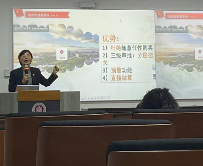 接着,王洪华老师就《以高水平安全服务化学品高质量管理》为题,介绍了我校化学品管理的安全支撑体系。深挖实验室耗材采购平台和实验室安全助理系统对化学品安全管理的优势及隐形功能,并结合实例讲解了化学品管理平台如何破解无序购买、无台账、无法监控库存量等诸多化学品管理中的老大难问题。在兼顾平台管理化学品的同时,也积极探索为实验室安全提供多方面的特色服务。经历了我校短短几年时间化学品管理从手工记账到信息化数字化管理的巨大变迁,面对日新月异科学技术的迭代升级,化学品管理高水平安全仍然处于起步阶段,作为一名党员教师,应积极发挥模范带头作用,勤学善思,发展新质生产力,力争在化学品安全管理方面走在高校的前列。
