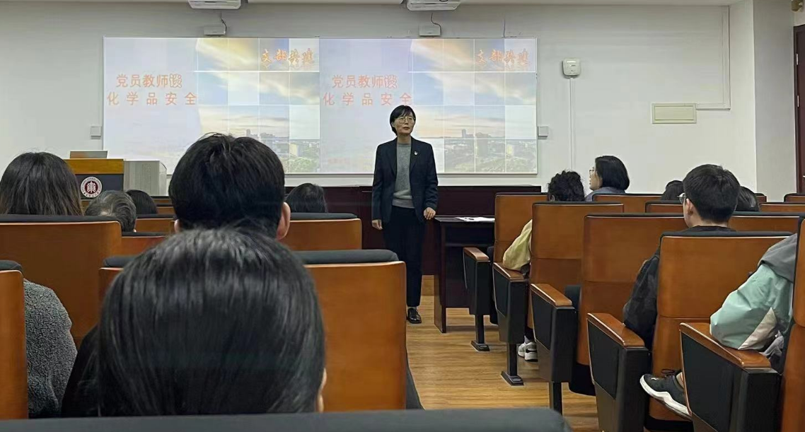 党的十八大以来,习近平总书记高度重视统筹做好发展和安全两件大事,强调“坚持统筹发展和安全,坚持发展和安全并重,实现高质量发展和高水平安全的良性互动”。为践行习近平总书记提出的树牢总体国家安全观,在第九个“全民国家安全教育日”来临之际,4月17日下午,无机-有机-职工党支部、2021级闵行校区博士研究生支部和2021级闵行校区硕士研究生支部就“基于高水平安全视角谈党员教师在高校化学品安全管理的责任担当”开展主题党日活动。本次活动由教工支部宣传委员王洪华老师主持,同时邀请了中北校区和闵行校区化学药品室管理员王洪华老师和王晶老师进行专题报告。