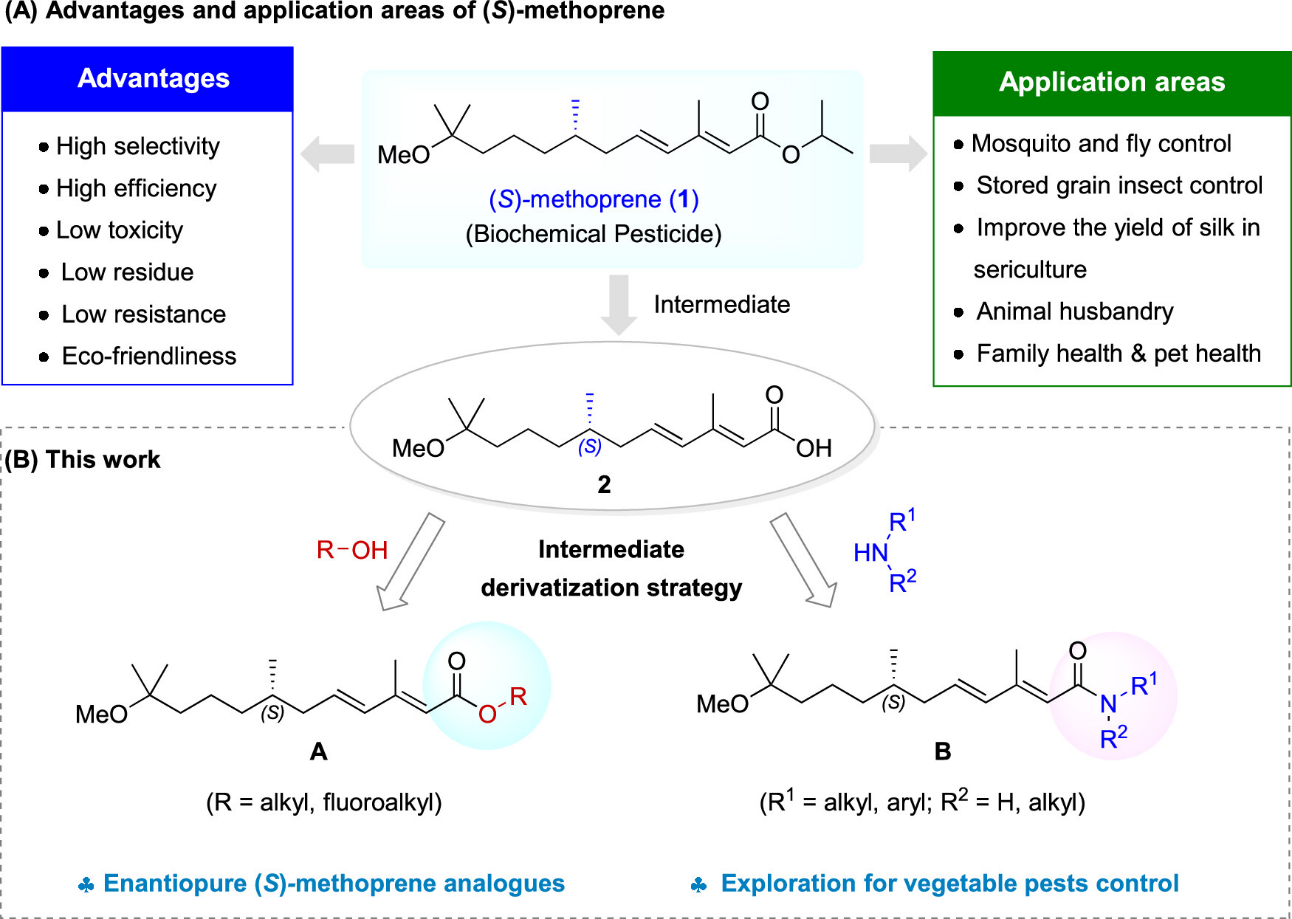图1.S-烯虫酯的应用现状和该研究的设计思路