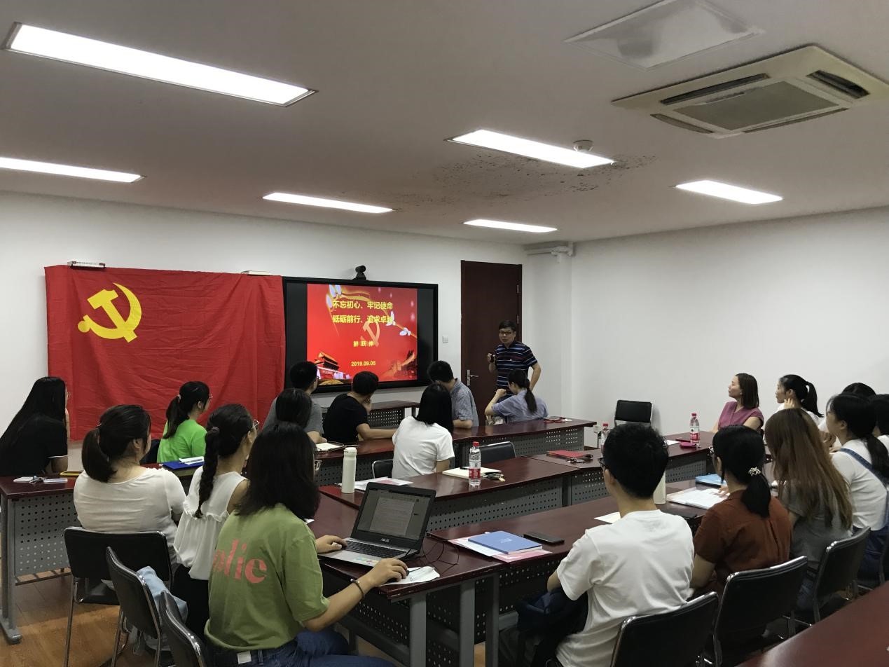为学习贯彻“不忘初心,牢记使命”主题教育活动精神,更好地发挥党组织战斗堡垒作用和党员先锋模范作用,2019年9月5日上午,av大平台 中北、闵行2019级研究生党支部第一次党课同时在闵行化学楼126教室和中北理科大楼B1602召开,两个校区的2019级新生党员参加了此次会议。两校区会议分别由院党委书记鲜跃仲老师、院党委副书记王婷婷老师主讲,参加会议的还有学院组织员曹美萍老师、辅导员李小玲老师和辅导员冯琪老师。