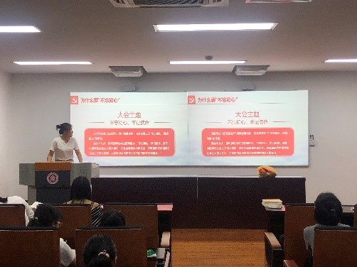 2019年9月18日,闵行2017级研究生党支部在化学楼135报告厅举行了以“不忘初心 牢记使命”为主题的党日活动。活动伊始,支部书记路晴向参加活动的党员同学们说明了活动举办的意义和目的,习近平总书记在建党95周年的讲话中,向全党发出了“不忘初心,继续前进”的号召。作为大学生党员,更要牢记自己的使命,砥砺前行。全体党员一起重温《共产党宣言》,通过观看两段微视频<重温《共产党宣言》>和<《共产党宣言》的味道>,一起感悟《共产党宣言》的魅力。通过此次主题党日活动,支部党员们深受启发和鼓舞,更加深刻地感受到《共产党宣言》所蕴藏的深刻思想和伟大力量。大家一致表示,一定要学好用好《共产党宣言》等马克思主义经典著作,不断坚定马克思主义信仰和共产主义理想,学以致用、用以促学,以更加饱满的热情、更加昂扬的斗志,投身到日常的学习和生活中。