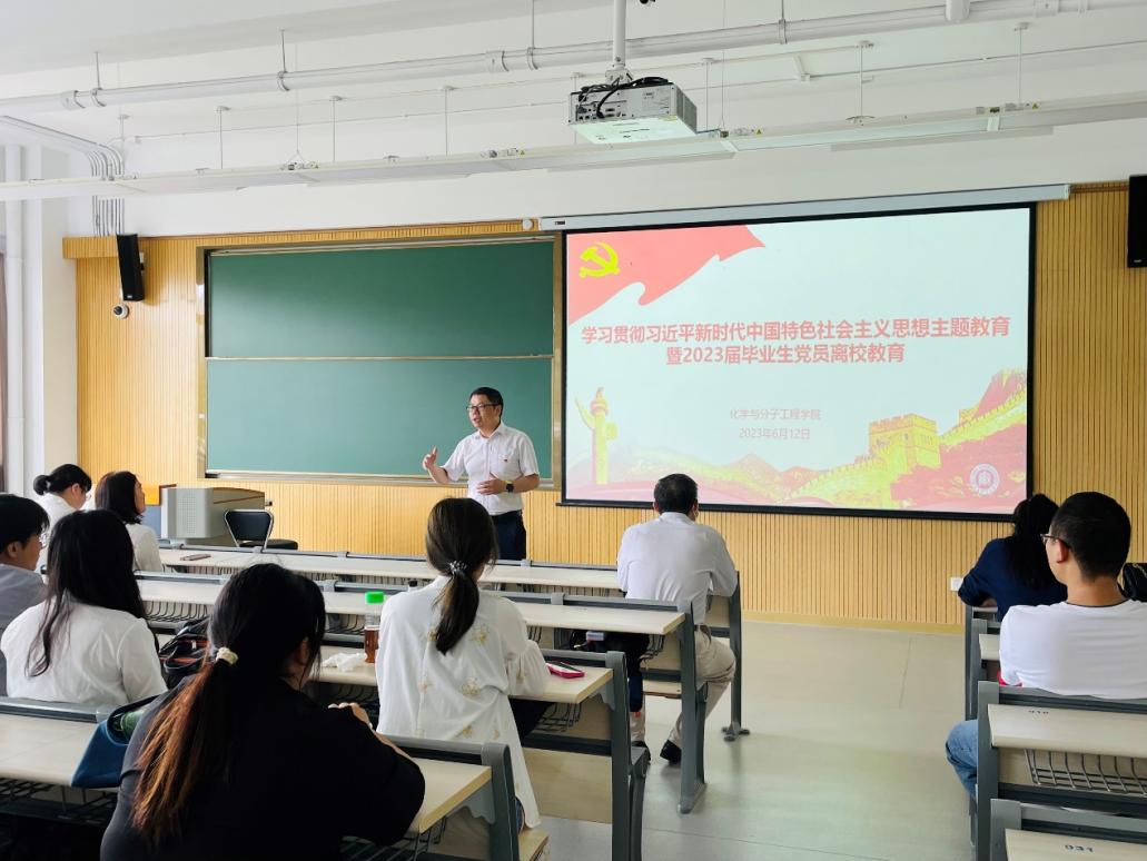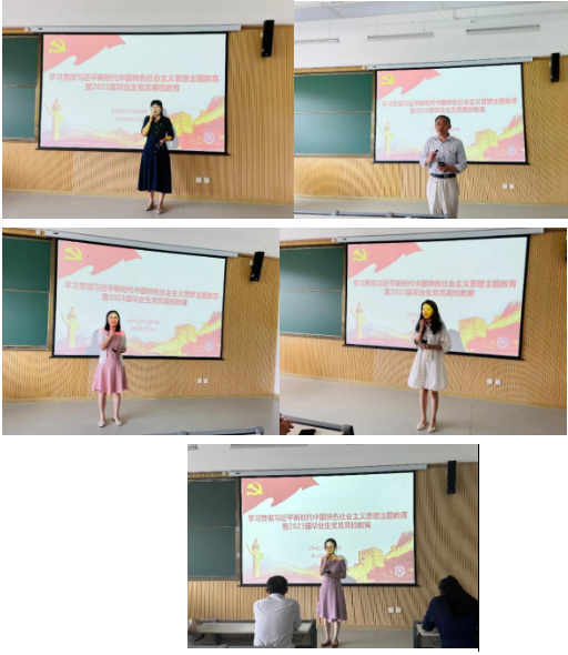 为深入学习贯彻习近平新时代中国特色社会主义思想,加强2023届毕业生党员离校教育,2023年6月12日下午,av大平台 党委在闵行校区第四教学楼202教室为毕业生党员上了在校的最后一次党课,教育引导毕业生党员用习近平新时代中国特色社会主义思想武装头脑,在新的起点上不断增强党性修养,在新的岗位上发挥好先锋模范作用。学院党委书记鲜跃仲,党委委员、副院长王媛媛,党委委员谢美然,马克思主义学院教师李小玲,专职组织员曹美萍,院团委书记、研究生辅导员冯琪和本科生辅导员史琳参加,党委副书记王婷婷主持会议。
