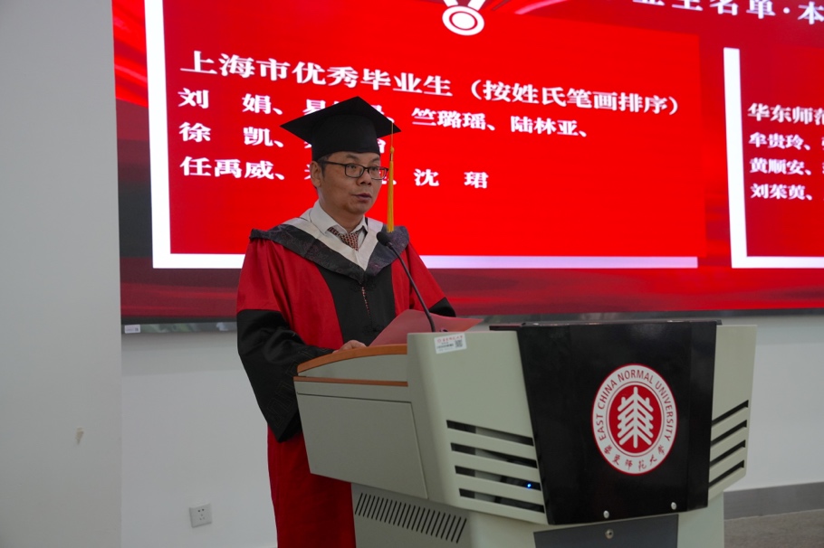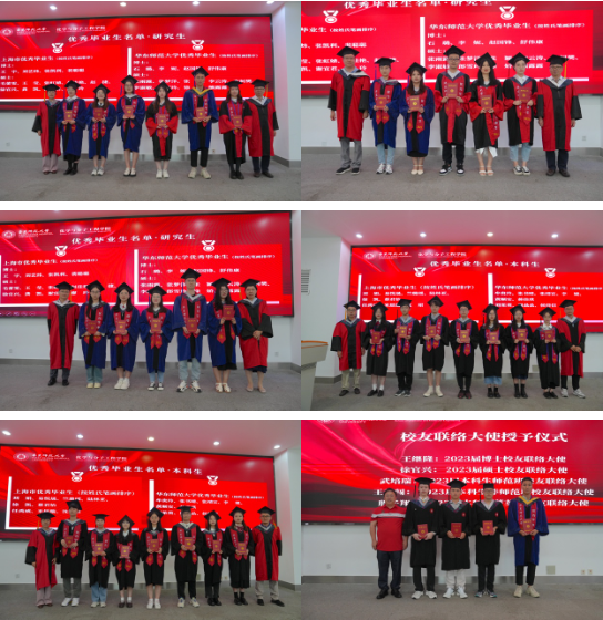 在随后进行的优秀毕业生表彰和校友联络大使授予仪式中,学院党委书记鲜跃仲宣读了获得上海市和学校优秀毕业生的名单,同学们依此有序走上主席台接受表彰并合影留念。
