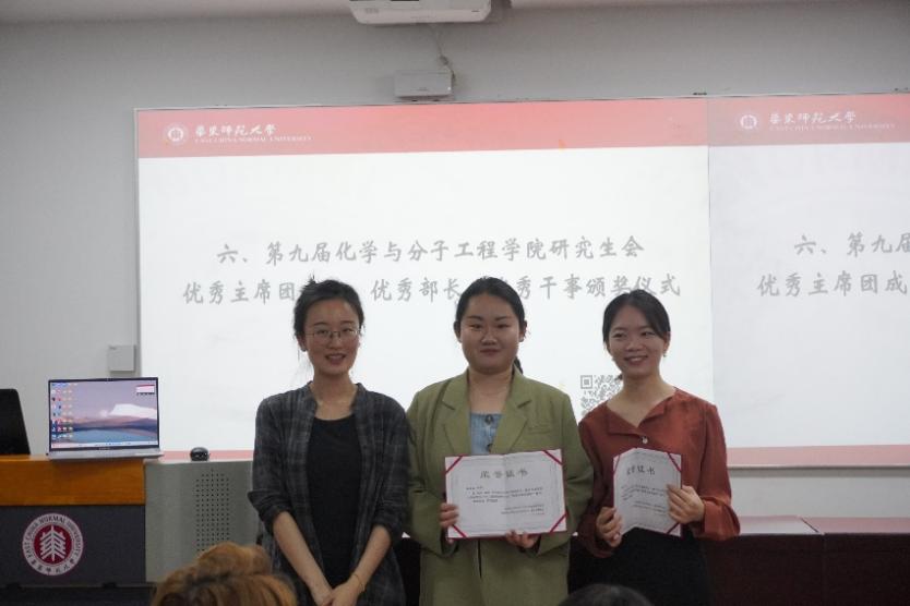化院第九届研会所取得的成绩,离不开全体成员过去一年的辛勤付出。老师们为主席团成员及部长颁发了聘书,为优秀主席团成员、优秀部长和优秀干事颁发的荣誉证书。每一份红彤彤的证书,都满怀着老师们对研会成员工作的肯定与赞扬。