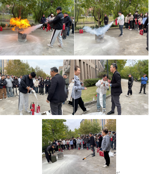 演示结束后,到场的师生纷纷依次使用灭火毯、干粉灭火器或二氧化碳灭火器进行实操练习。