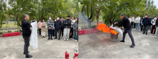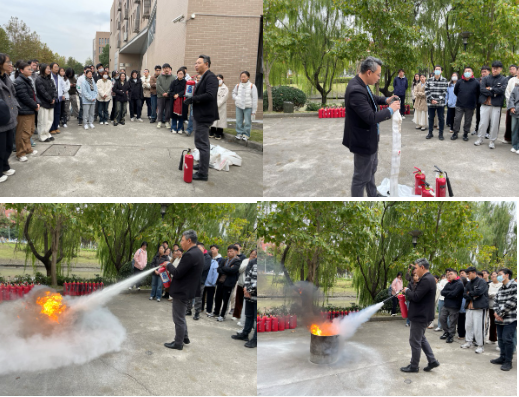 此次活动主要包括灭火毯和灭火器的知识和使用,消防栓上水带的连接方法及灭火实操。校保卫处吴昀非老师为大家讲解灭火毯、干粉灭火器和二氧化碳灭火器的使用方法以及消防栓上水带的连接方法,并分别使用灭火毯、干粉灭火器、二氧化碳灭火器进行消防演示。